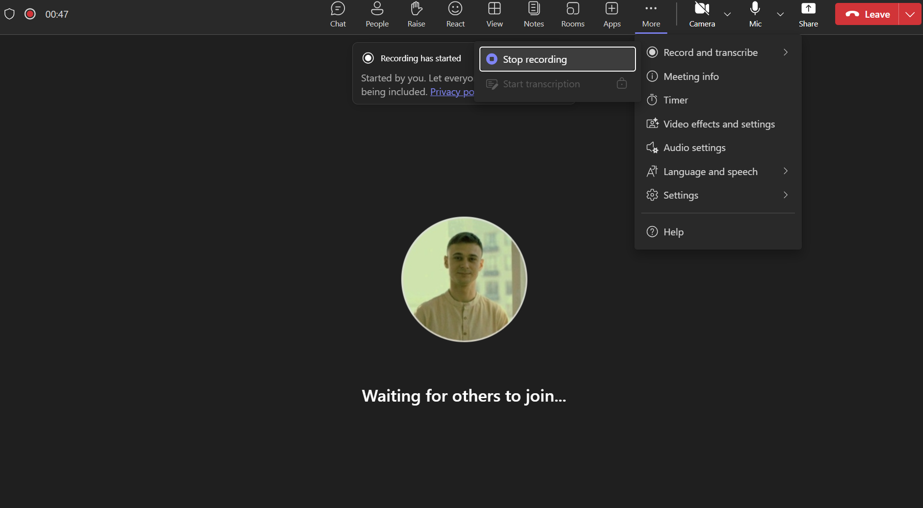 > Note: You may also see Start transcription appear as a separate option depending on your organization's policies.