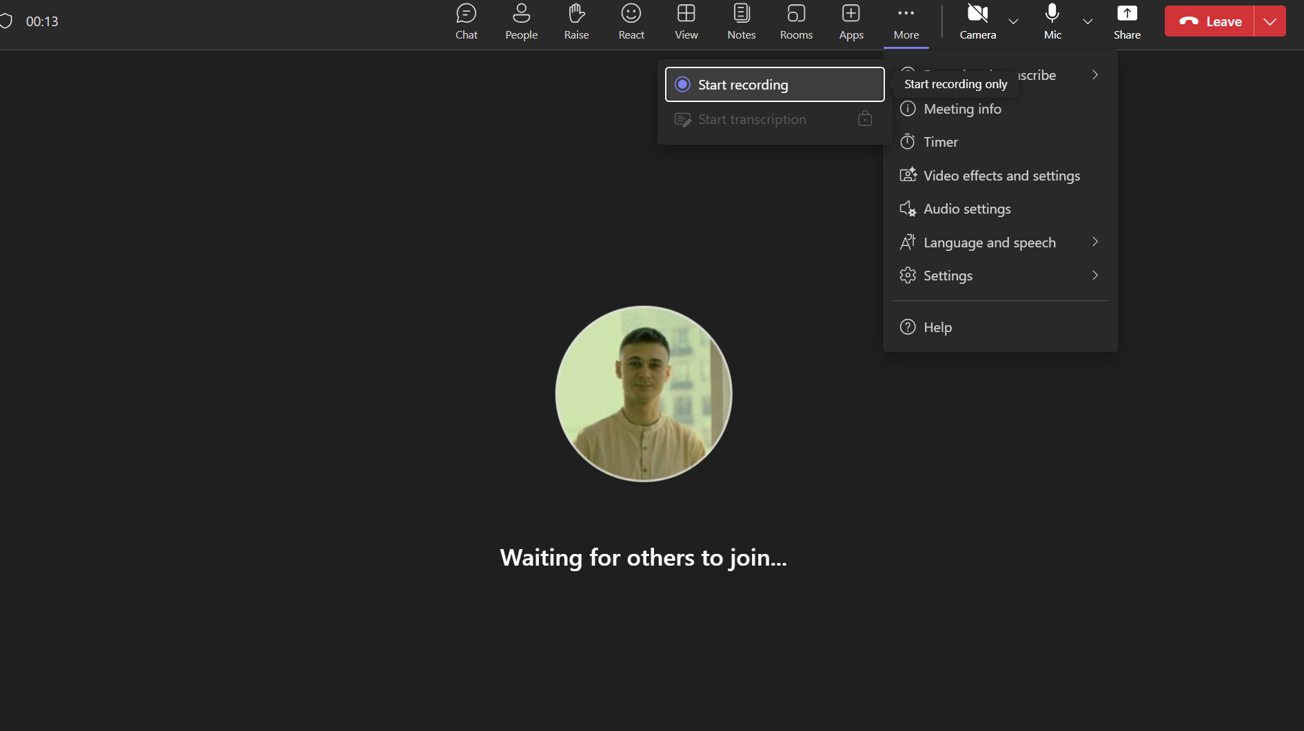 ) in the meeting toolbar. Select Start recording from the dropdown menu.